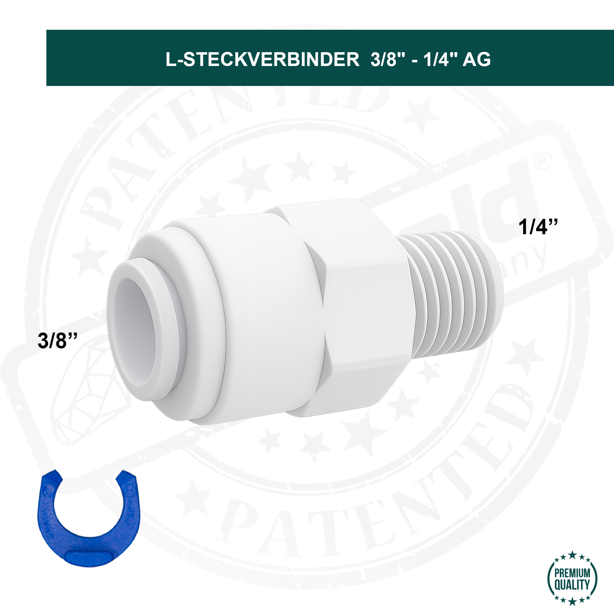 Фитинг адаптер c разъёмом 3/8" - 1/4" для воденого фильтра и системы обратного осмоса, холодильника с водопроводом марки Smarald® - Kopie